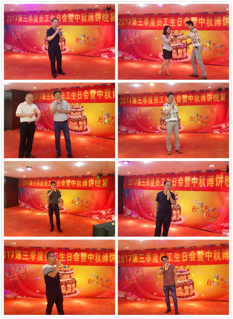 金秋九月,它不僅給我們帶來了涼涼的秋意,還為我們迎來了中國傳統(tǒng)節(jié)日——中秋佳節(jié)。2017年9月29日晚,在公司行政人事部的統(tǒng)一部署下,“2017第三季度員工生日會暨中秋博餅晚宴”的聯(lián)歡活動在公司七樓多功能廳開展。同時,次日人力行政中心還精心組織開展集體活動。